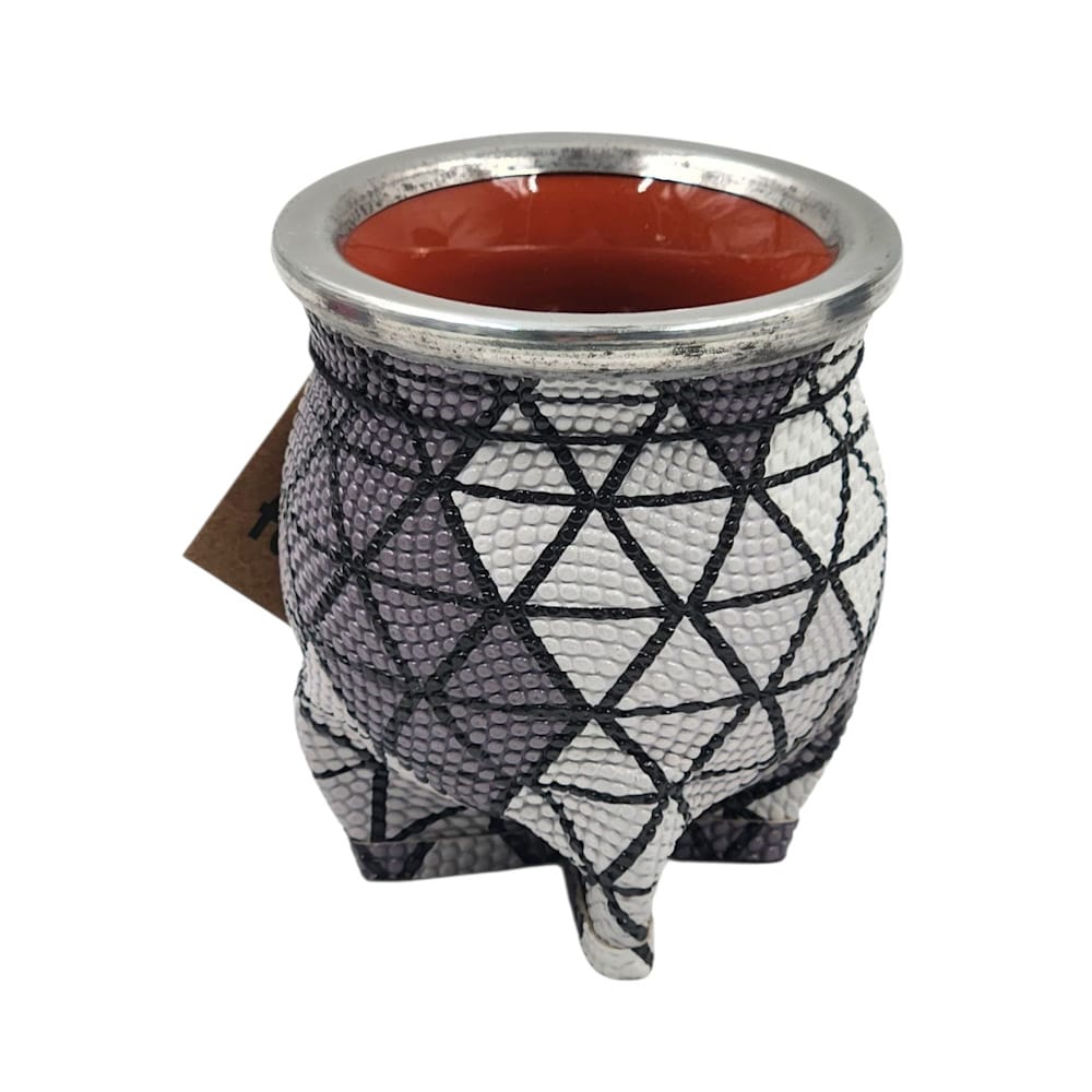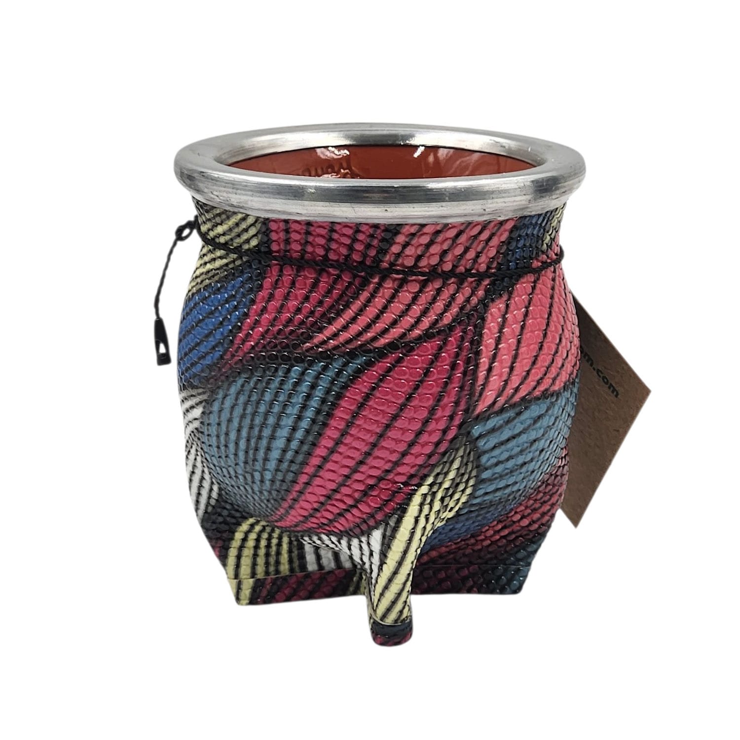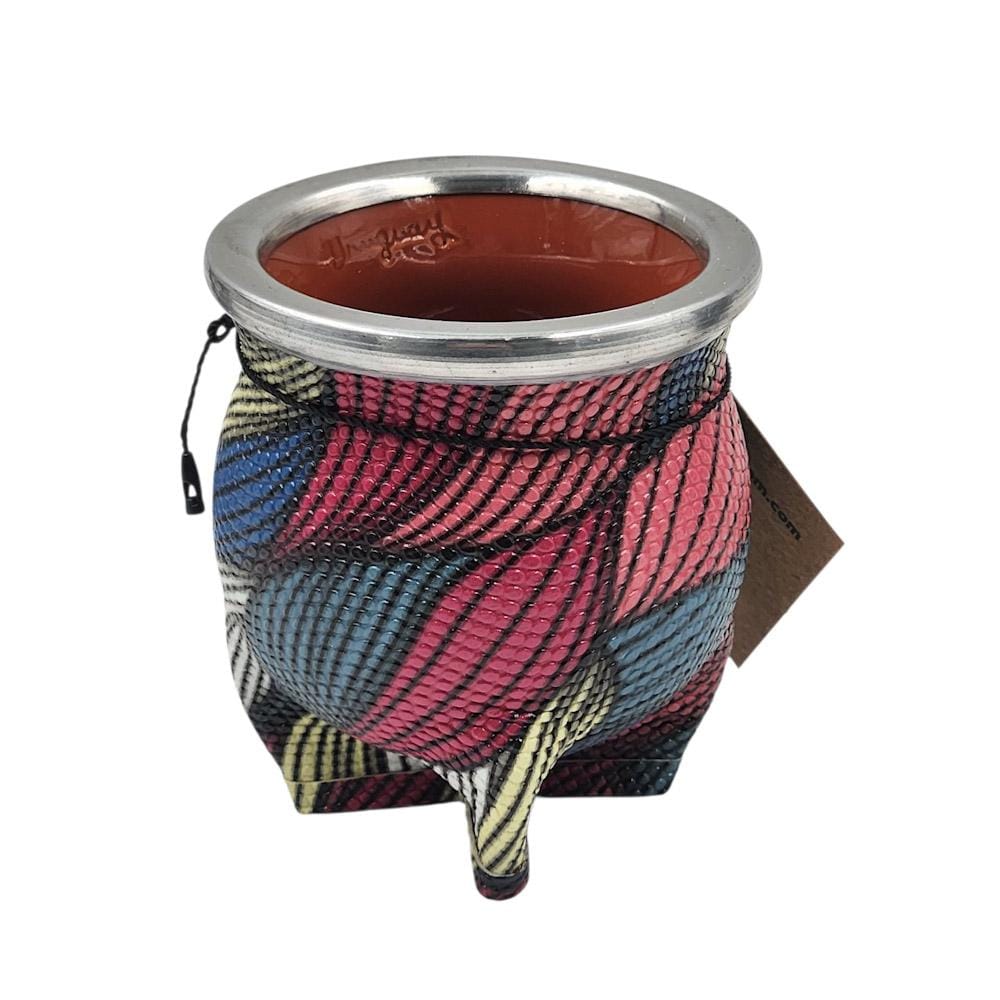 Mate camionero cerámico revestido en ecocuero con diseño y virola de acero.