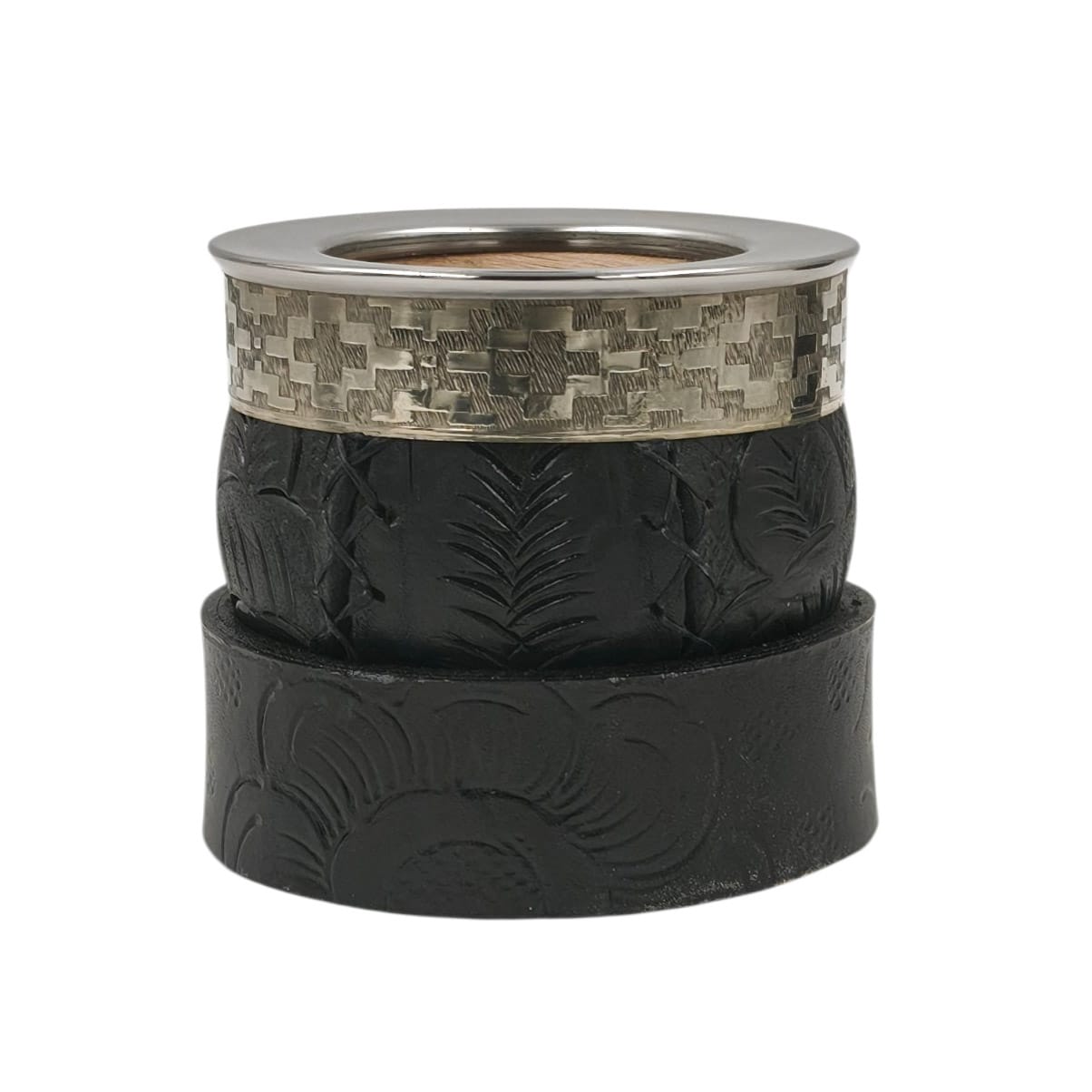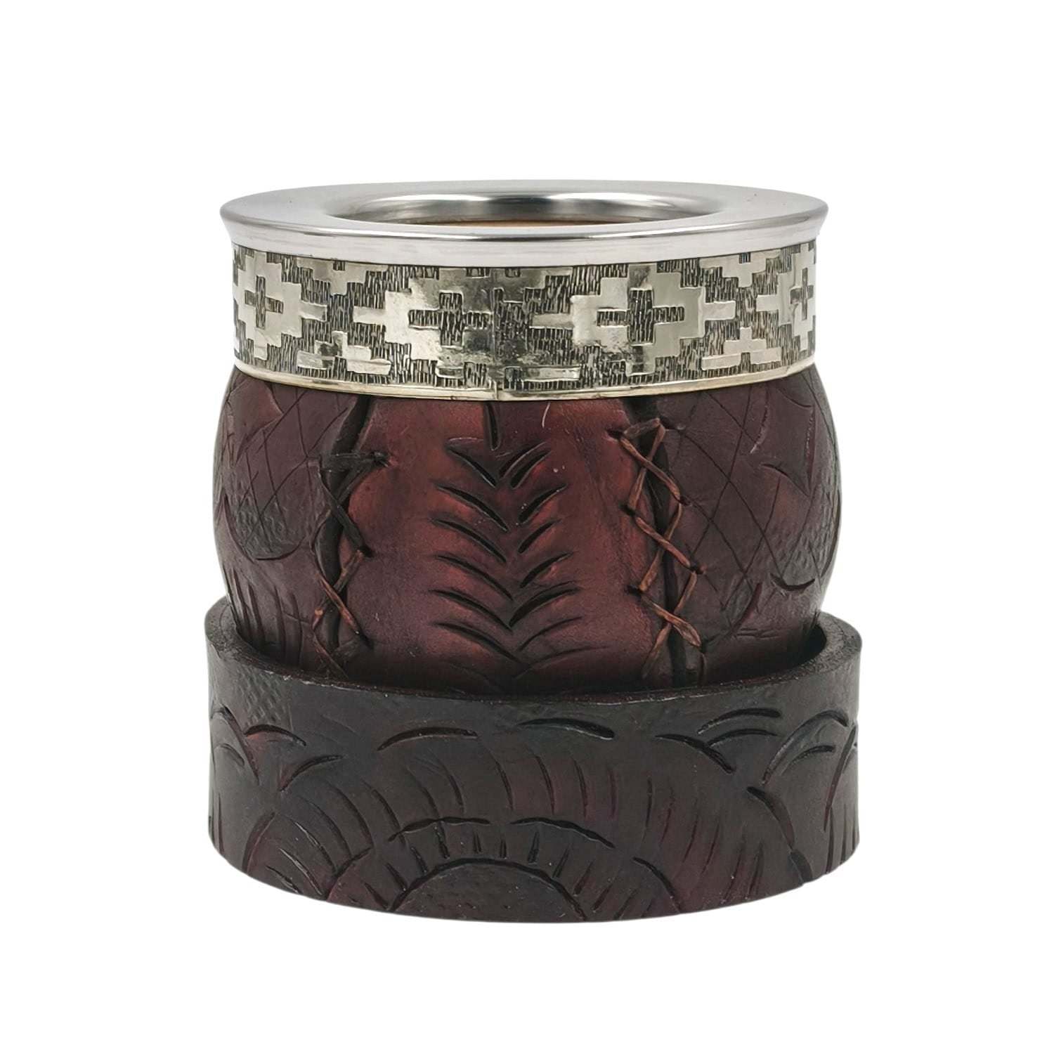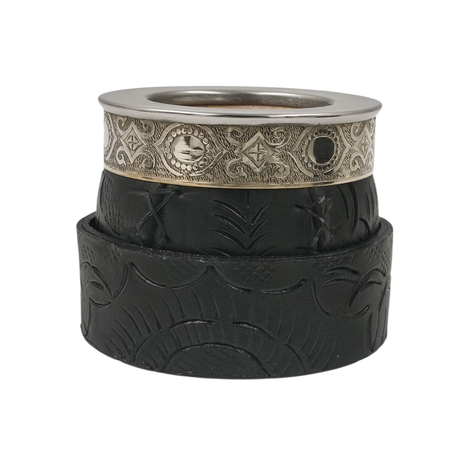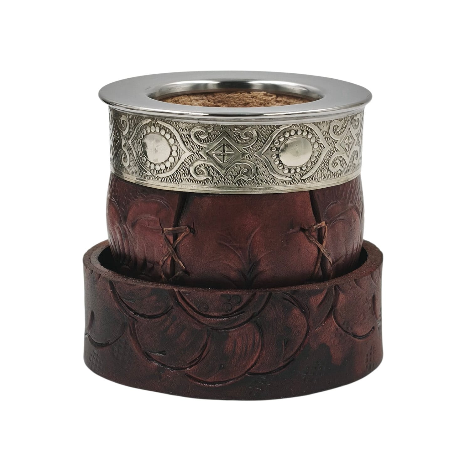 Hermoso y único mate interior calabaza seleccionada revestido en cuerolabrado con base de cuero desmontable labrada.