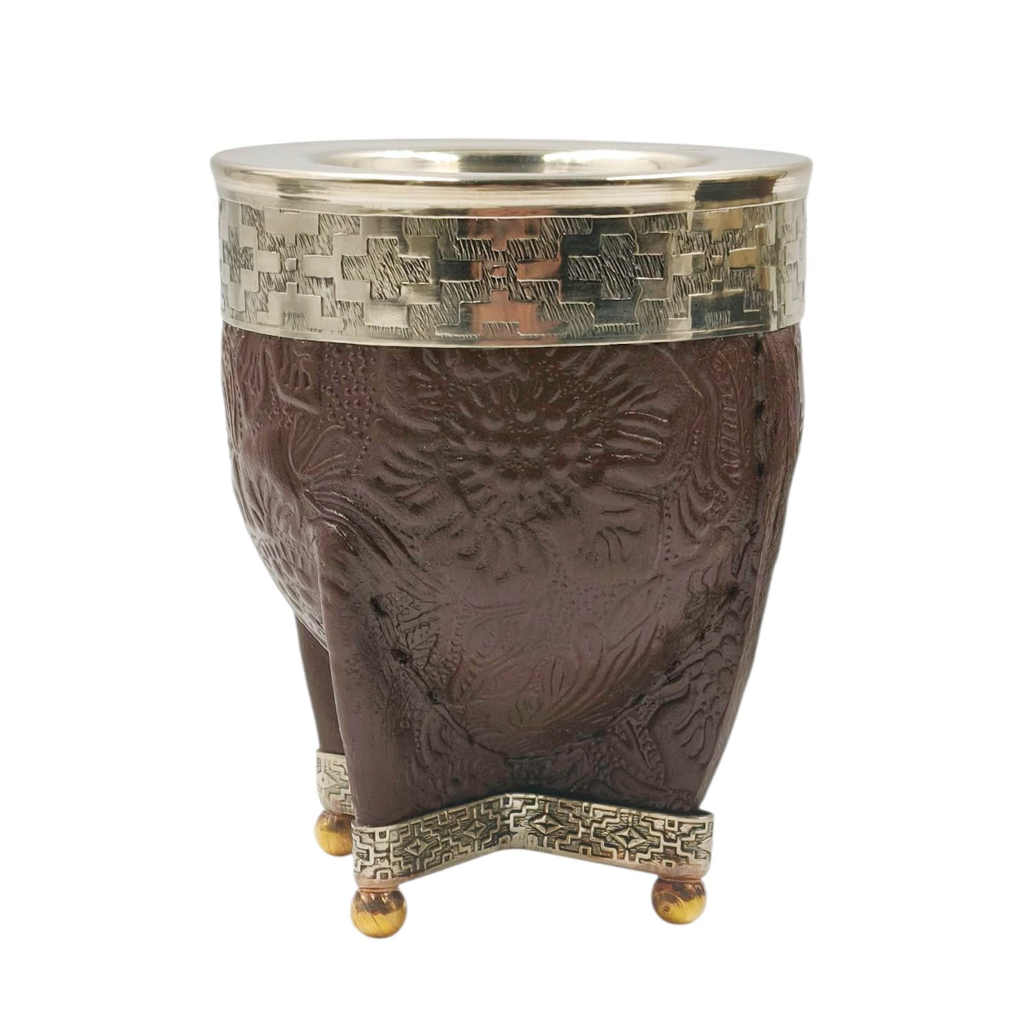 Mate imperial de acero revestido en cuero texturado.