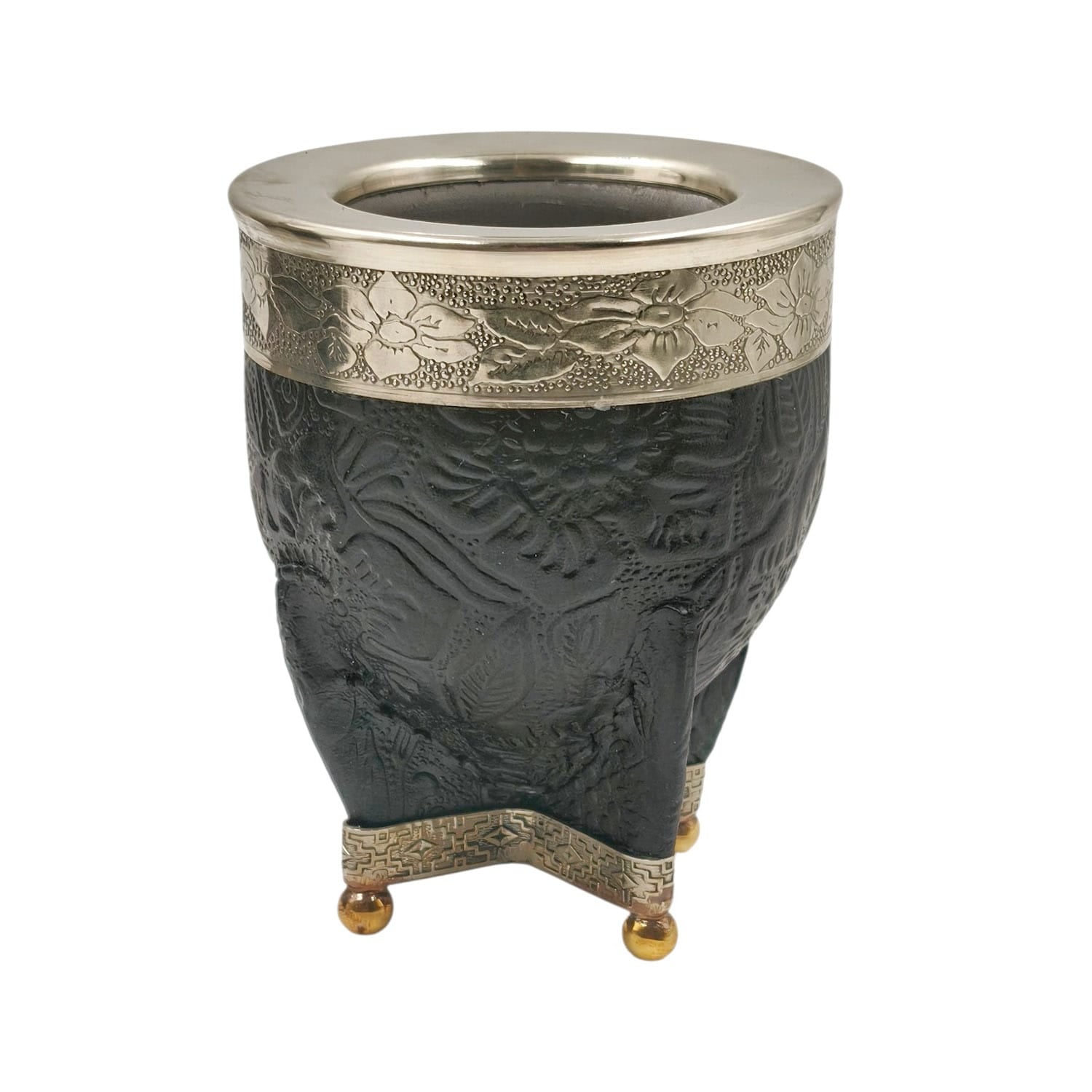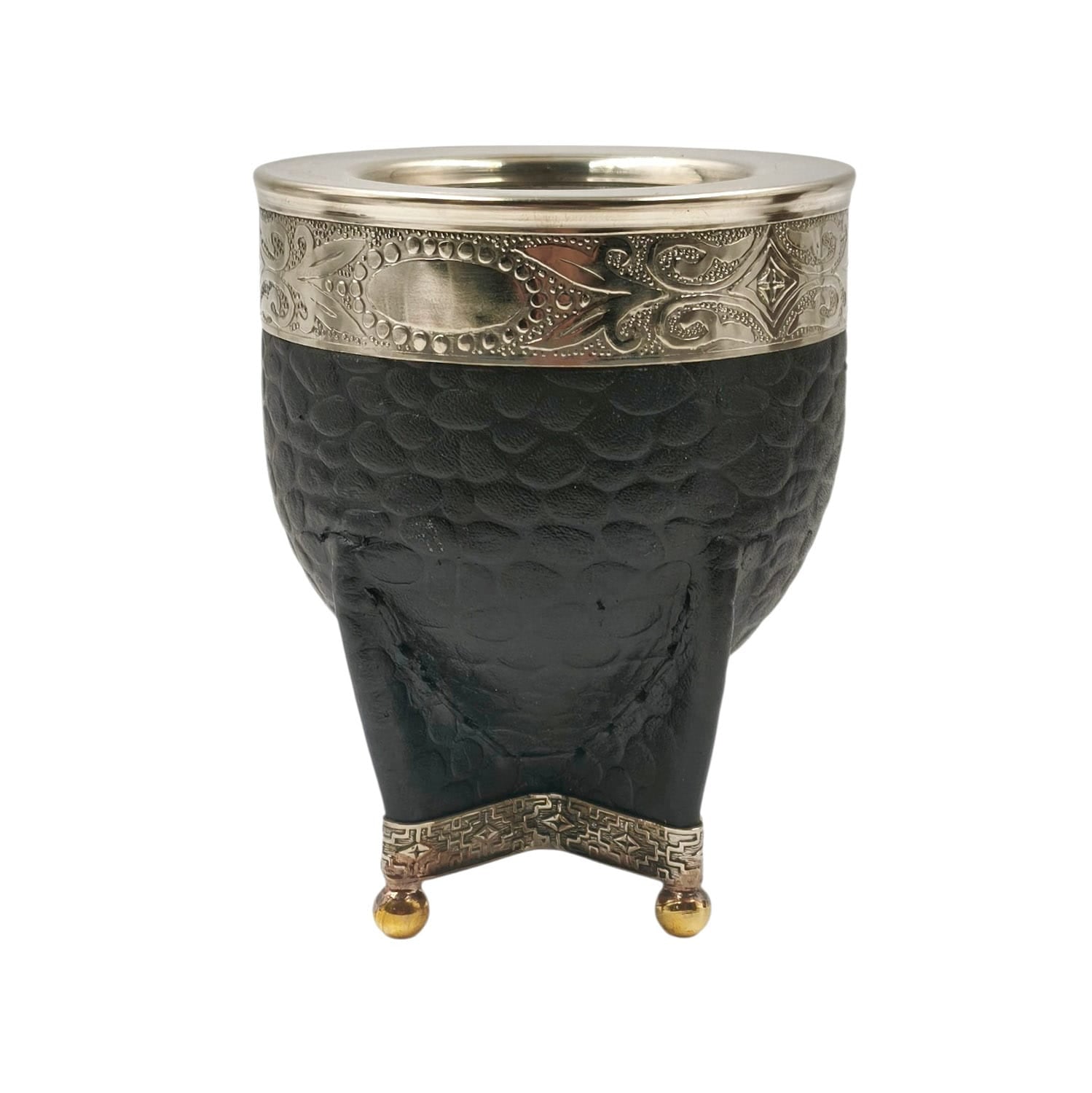 Mate imperial acero texturado virola y base en alpaca con bolitas