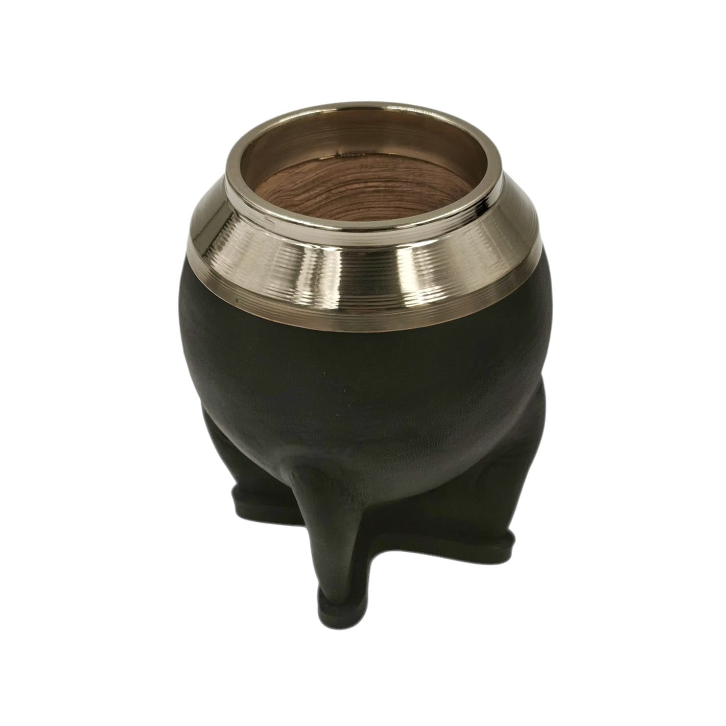 Mate torpedo de calabaza revestido en cuero con virola de alpaca.