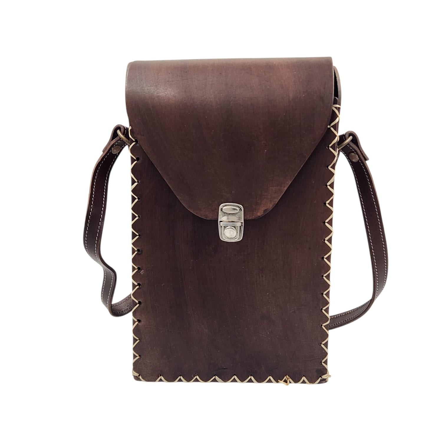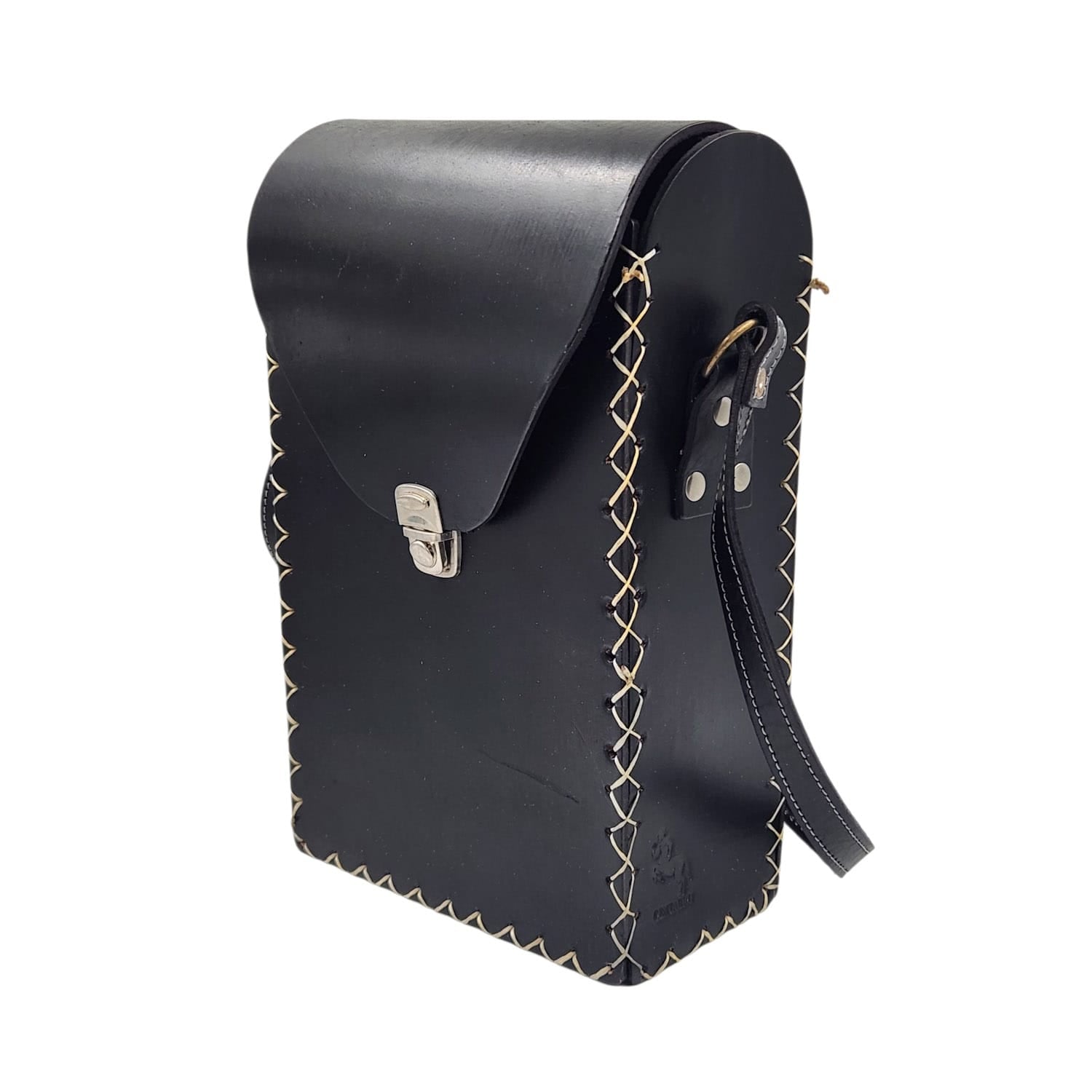 Portatermo rígido de cuero vaqueta solo un compartimiento por dentro.