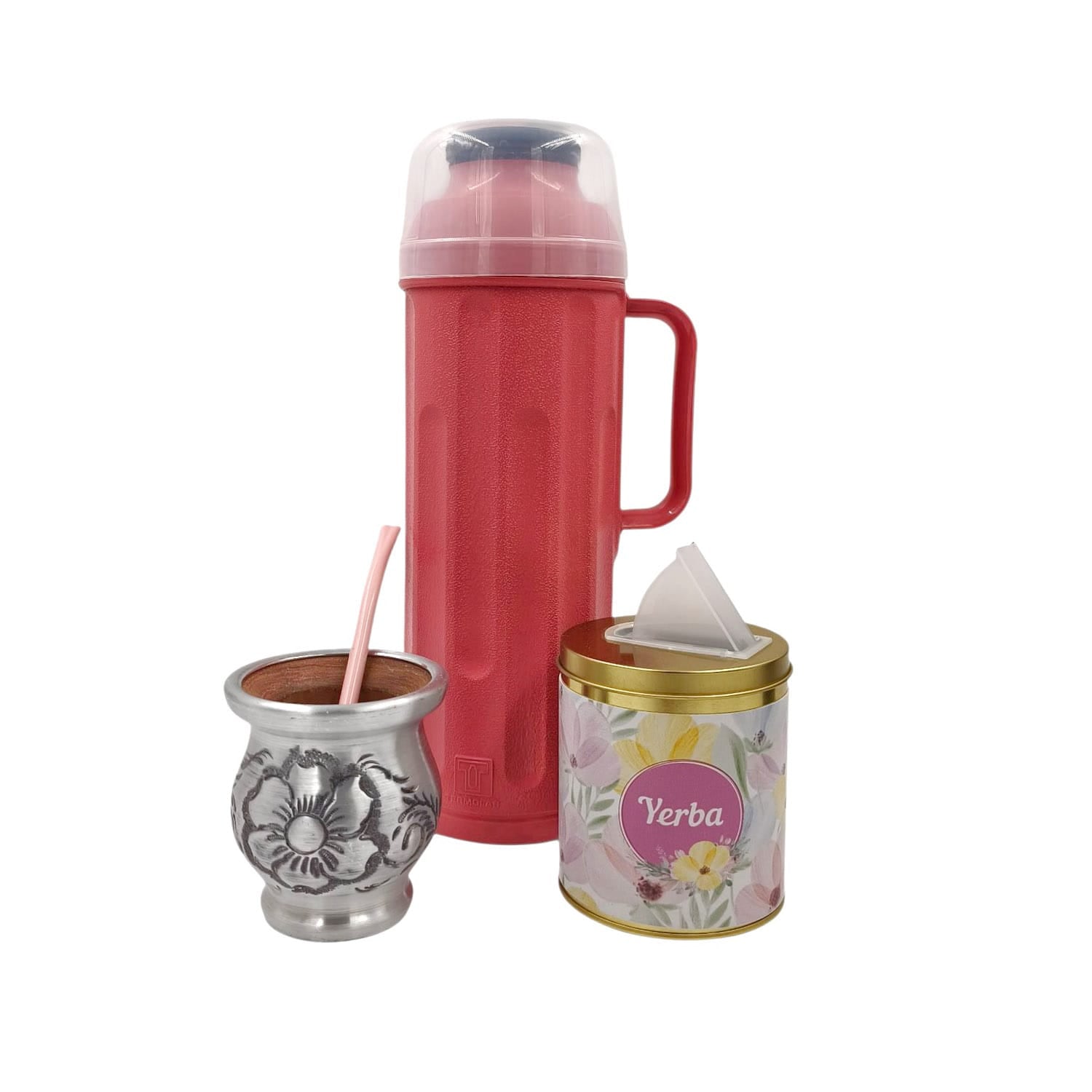 -Termo personal práctico, cómodo y liviano de un litro de capacidad  con pico cebador ideal para preparar mate.