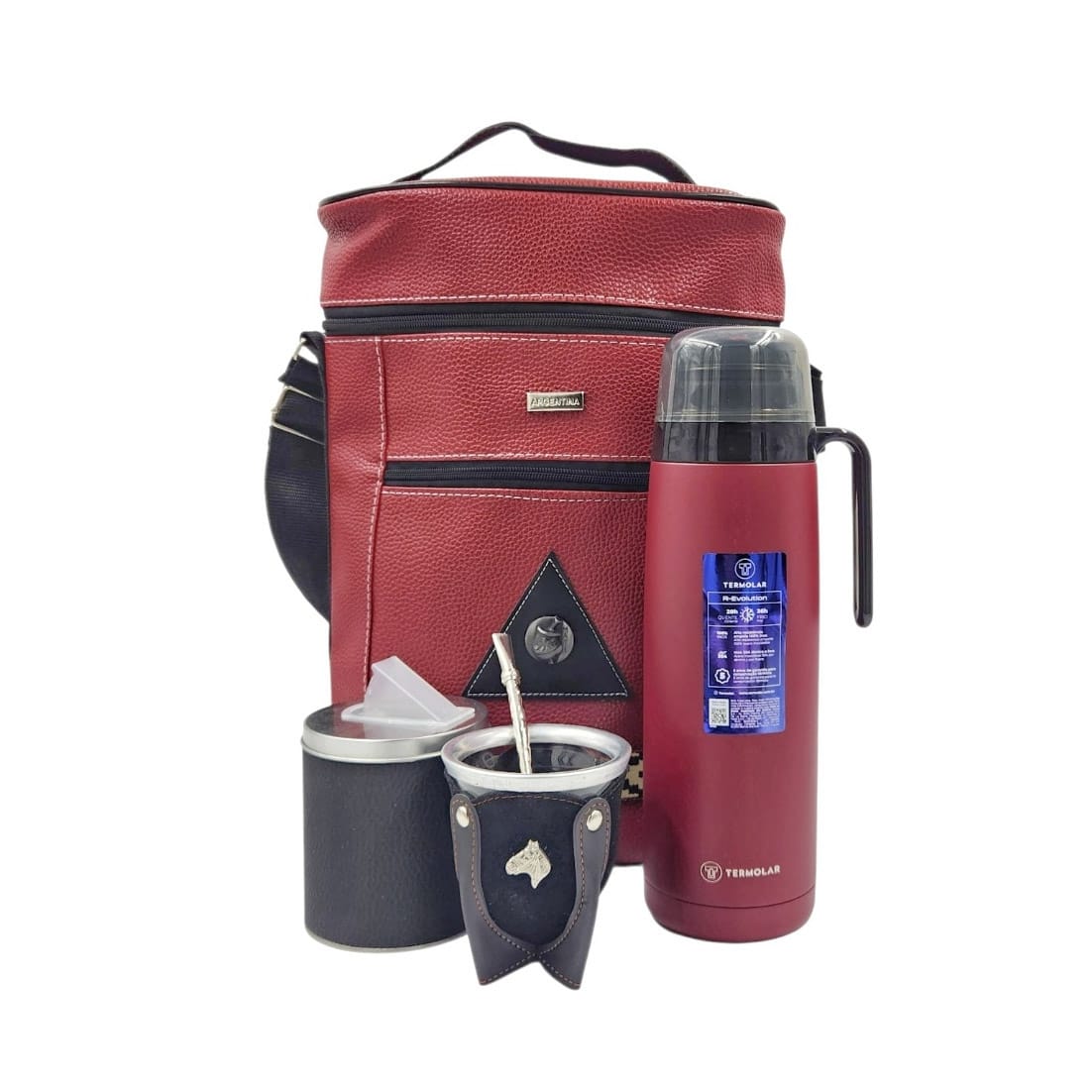 -Bolso matero de buen tamaño, cómodo y de fácil limpieza.  Está fabricado en ecocuero con detalle en guardapampa y adorno diseño de mate.