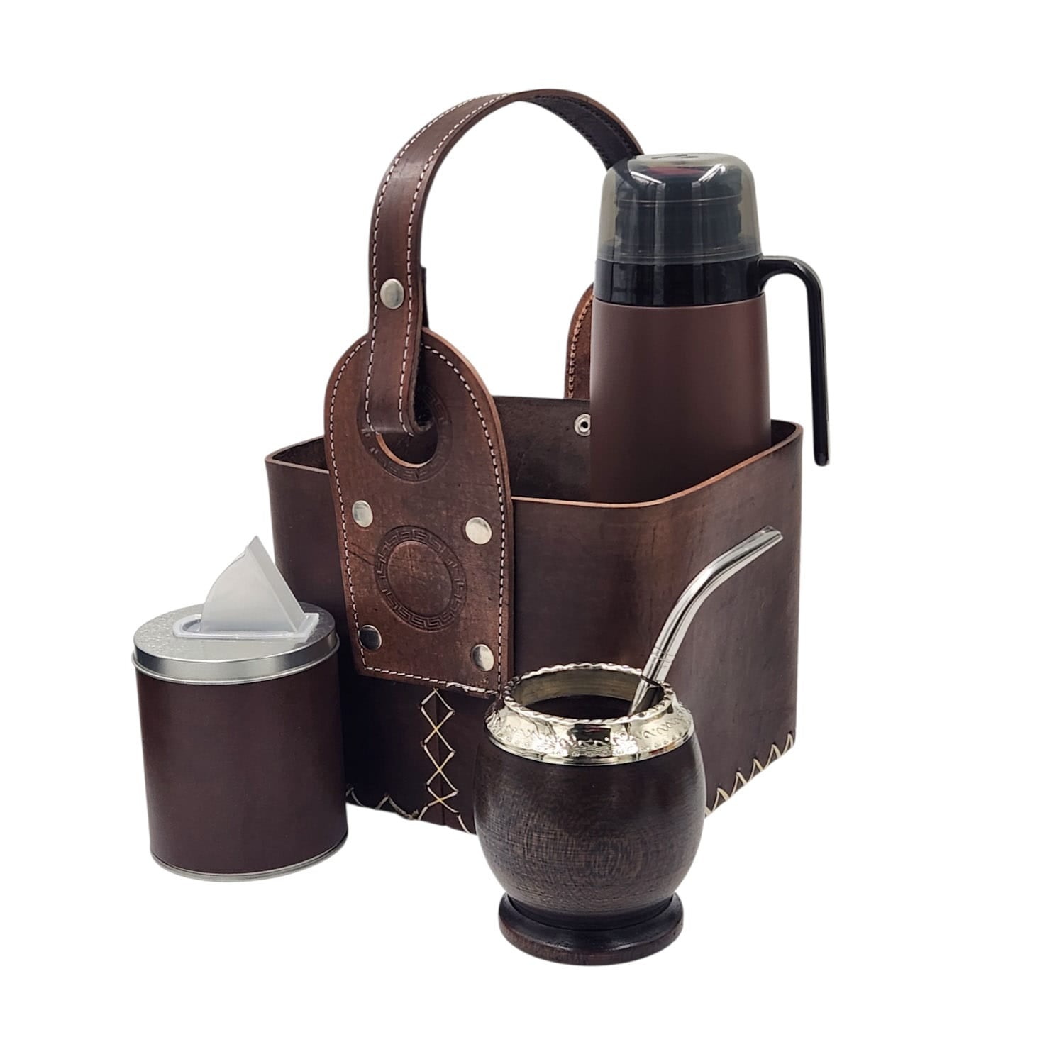 - Dispensador de yerba con difusor forrado en ecocuero.