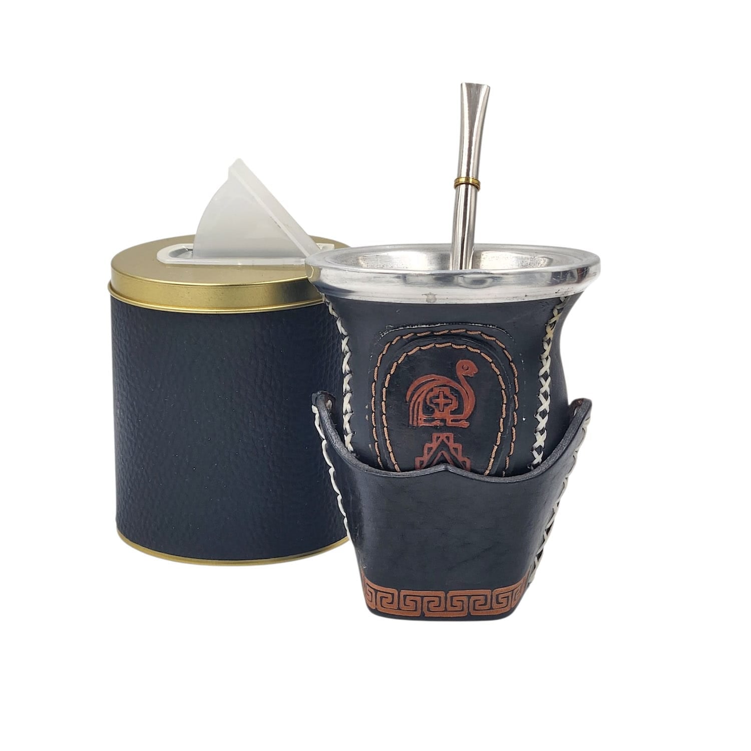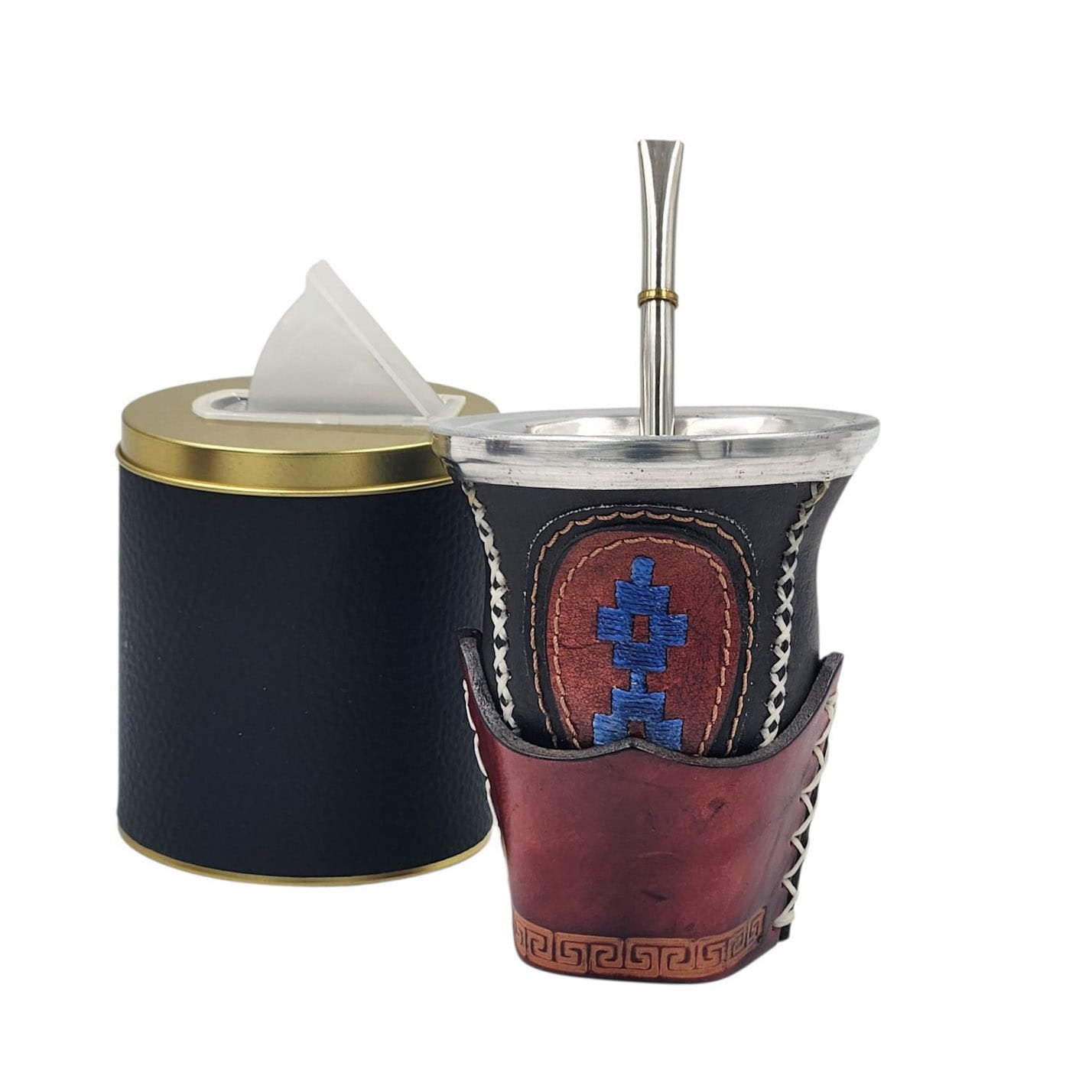 - Dispensador de yerba con difusor forrado en ecocuero.