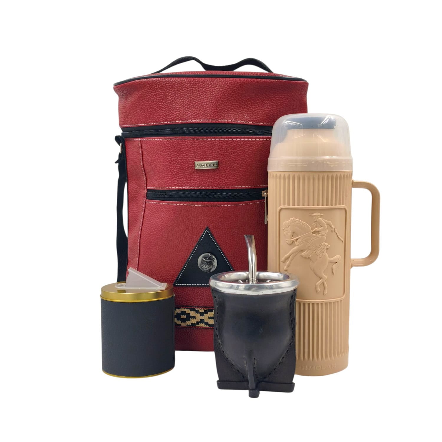 -Bolso matero de buen tamaño, cómodo y de fácil limpieza.  Está fabricado en ecocuero con detalle en guardapampa y adorno diseño de mate.