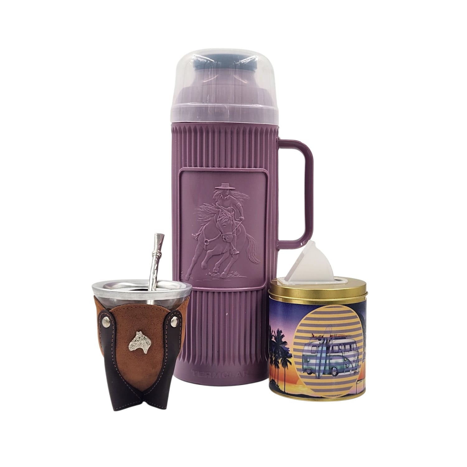 -Dispensador de yerba con difusor forrado en ecocuero.